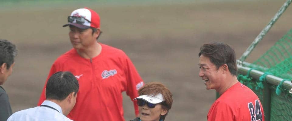 ソフトボール界のレジェンド指導者の言葉に、新井監督が真剣な表情で耳を傾ける。“勝ち方”を知る名将が新井カープに金言を授けた。激励に訪れた宇津木氏は「やっぱり、勝ちにこだわらないとプロじゃない。期待しています」と、笑顔の中に鋭い眼光を光らせながら、V奪還への確かな期待を口にした。