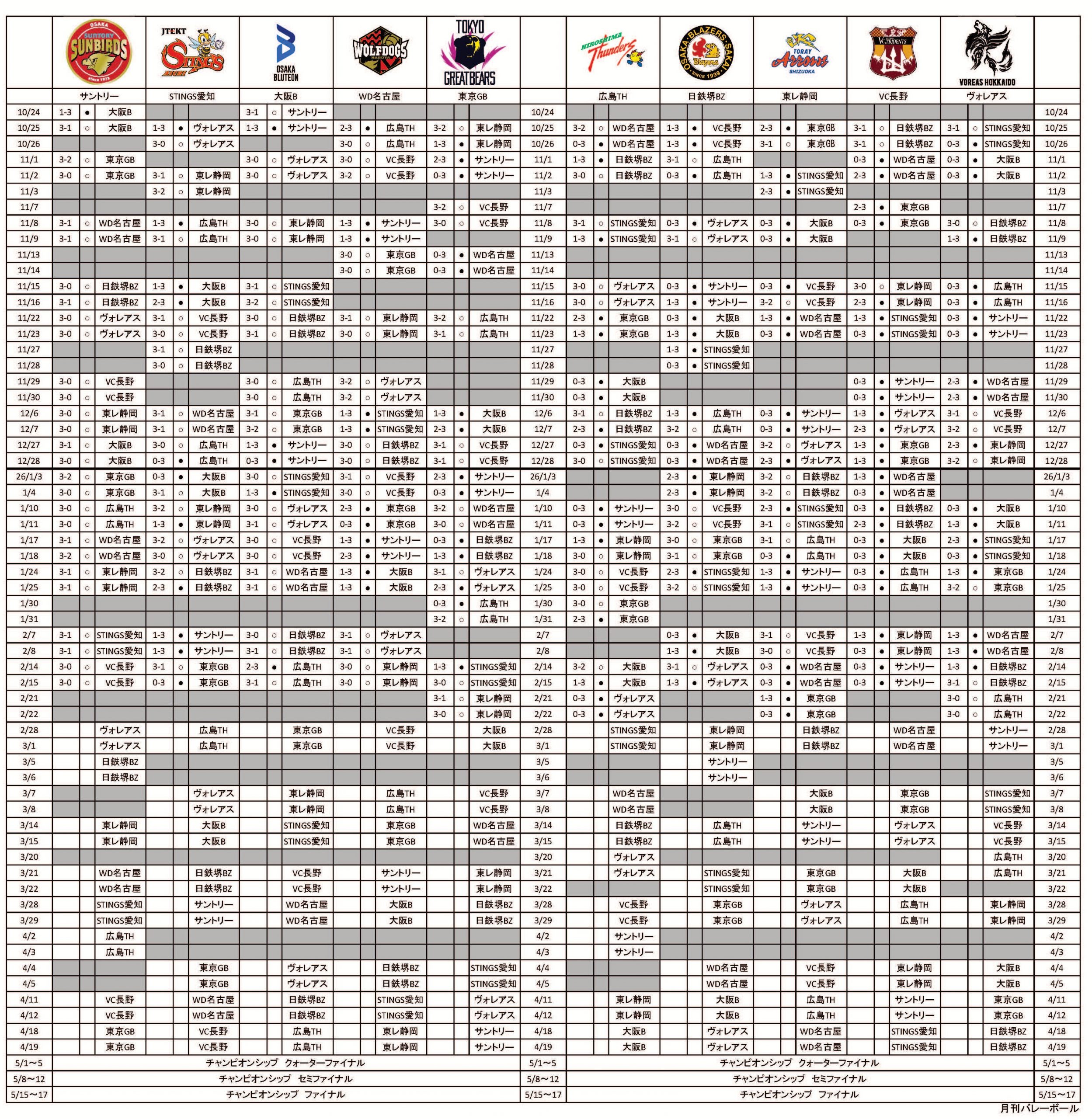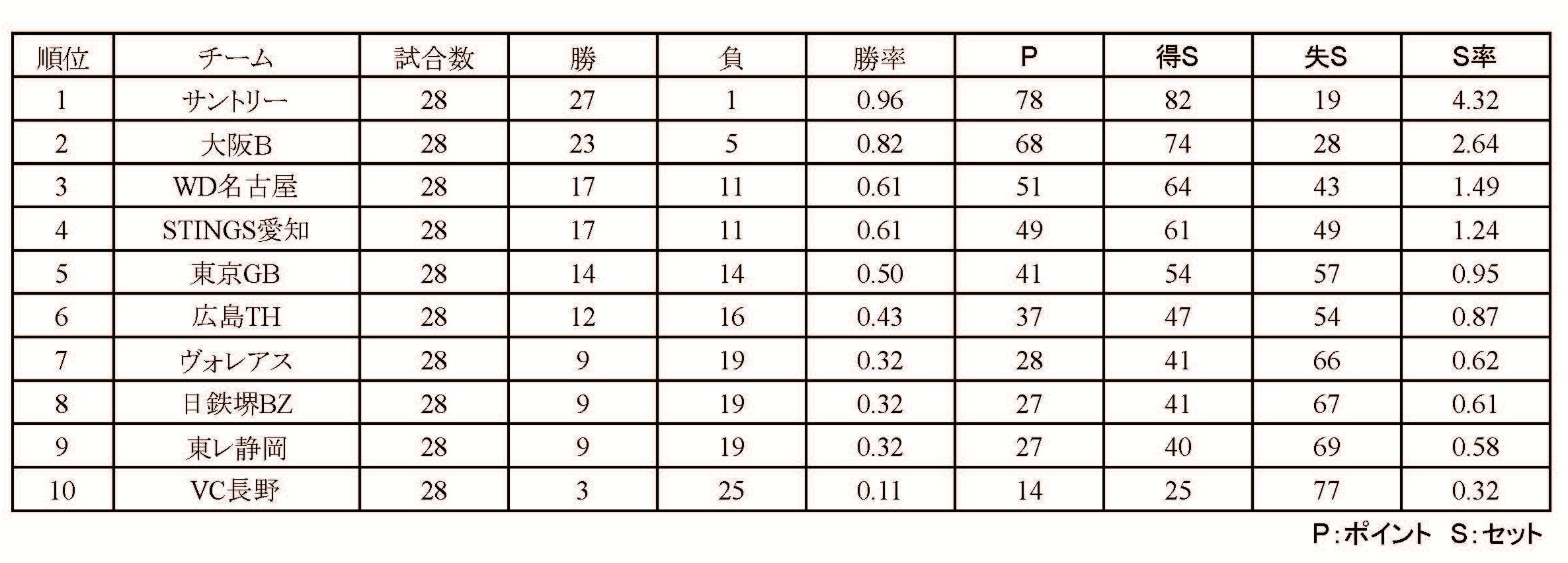 全チームがレギュラーシーズン28試合を終了するとともに、上記の結果を受けて、この2日間は試合を行わなかったサントリーサンバーズ大阪のレギュラーシーズン6位以上が確定。これにより、チャンピオンシップ進出が決まった。