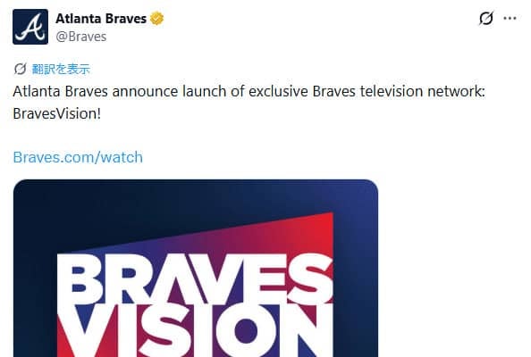 ブレーブスは24日(日本時間25日)、ローカルエリアでの試合中継を放送する球団独自のプラットフォーム「ブレーブスビジョン…
