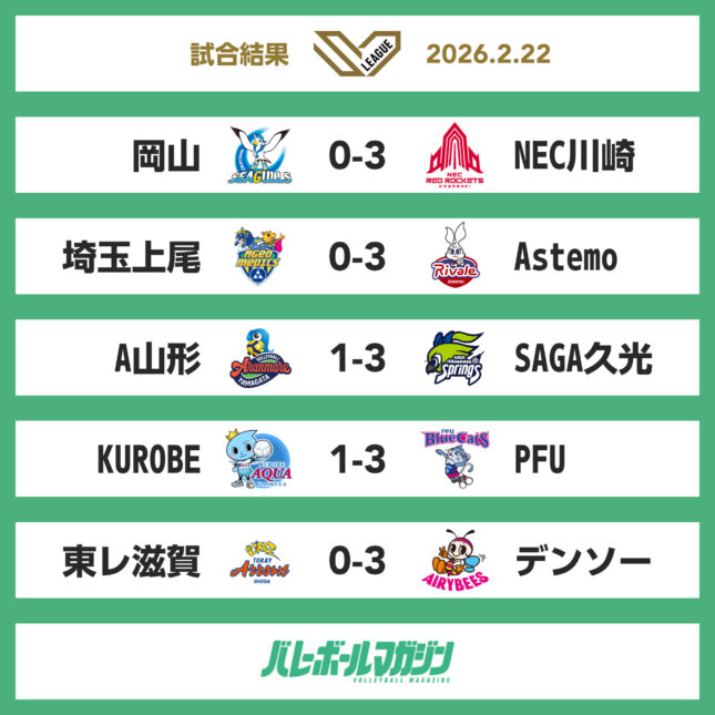 大同生命SV.LEAGUE WOMEN・22日の結果