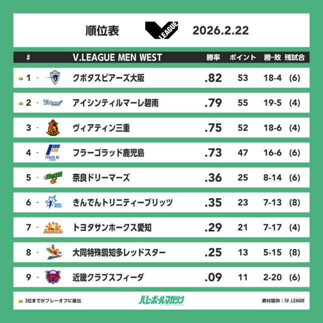 近畿大学記念会館では近畿クラブスフィーダとアイシンティルマーレ碧南が対戦し、セットカウント0-3のストレートでアウェイのアイシンティルマーレ碧南が勝利。19勝目を挙げ、2位をキープした。近畿は今季20敗目を喫し、苦しい戦いが続いている。