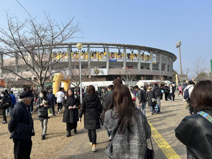 ソフトバンクホークスの本拠地、福岡市とは地続きであり、福岡市から毎年多くのファンが自動車で訪れる。ただ、メインスタジアムは地元のファンが先に席を占拠しがちなため、前売り券を販売し、遠方からのファンにも席を確保している。