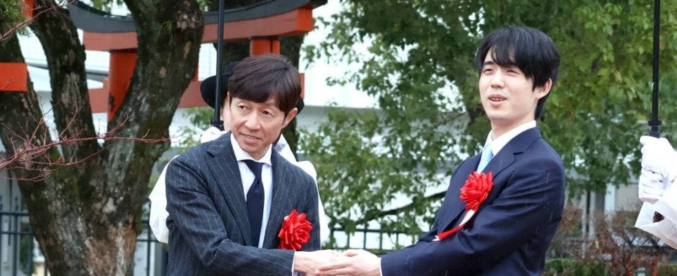 記念碑は京都競馬場ステーションゲート隣の稲荷社付近に設置。同所で行われた式には、武豊騎手が日本騎手クラブ会長として出席した。2日間の対局も観戦したという競馬界のレジェンドは式後「前回、前夜祭みたいな時に、ご挨拶はさせていただいたんですけど、しっかりとお話ししたというのは…。今日も『テレビとか見られるんですか?』とかね(笑)。そんな感じで。本当に普通のお話ですね」と笑顔。将棋の話にも及んだようで「将棋関連のお話も、特に…。将棋関連の話も僕ができないですから。まあでも、僕が小学校の時に、囲碁将棋クラブに入ってたっていう話をしたら、藤井さんも『おっ』っていう感じになって。周りが『ちょっと、どうですか?(対戦は)』って言うから、『参りました』って言いました(笑)」と笑わせた。