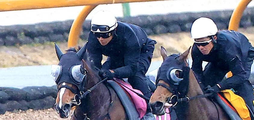 2連勝中と勢い十分なソルパッサーレ(牝3歳、栗東・四位洋文厩舎、父キズナ)は、浜中俊騎手を背にCWコースで半マイル追いで仕上げた。マテンロウシルビア(4歳1勝クラス)2馬身半追走する形でスタートし、52秒2―11秒1で鋭く伸びて半馬身遅れてフィニッシュした。鞍上は「リードホースを抜かないように、バランスを整えるようにという指示でした」と意図を説明。「先週より反応自体は良くなっているし、半マイルなので余力もあった。変わらずきています」と納得の表情を浮かべた。