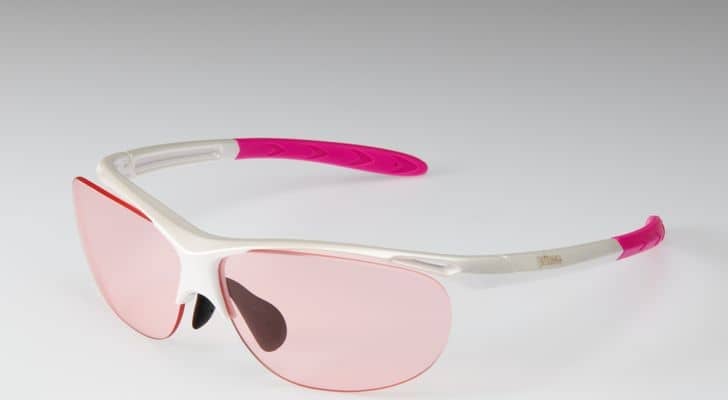 最大の特長は、素材に強靭で歪みの少ない「NXTポリマー」を採用したピンクカラーの調光レンズ。このピンクレンズは、テニスボールの黄色とのコントラストをはっきりとさせる効果があり、ボールの動きが非常に追いやすくなっている。実際に使用したレビューでも「黄色が別世界のように綺麗に見える」と評されるほど、視認性の高さが際立つ。
