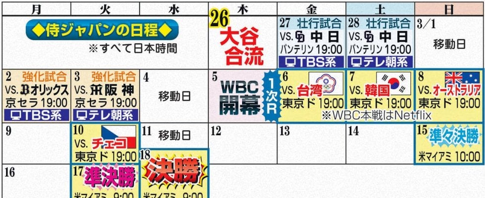 24日にチャーター機で帰国した侍ジャパン大谷翔平投手(31)は、26日にチームに合流する予定。バンテリンドームで行われる全体練習への参加は未定だが、鈴木誠也外野手(31)吉田正尚外野手(32)は練習に参加する予定で、再び名古屋に訪れるファンの心を熱くさせる。