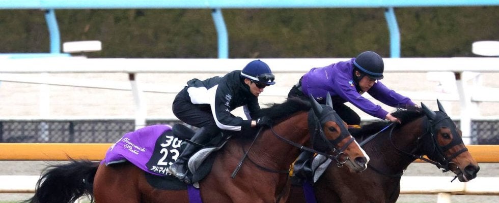 坂井瑠星騎手を背に、CWコースでフレミングフープ(5歳オープン)を3馬身追走。しまいはしっかりと気合をつけられて、ラスト1ハロン10秒9(6ハロン83秒3)で鋭伸。上々の切れを見せて併入で終えたが、友道調教師は「まだちょっと休み明けで重たい感じはあるけど、しっかり負荷をかけてもらったので、このひと追いで良くなれば」と良化の余地を語った。