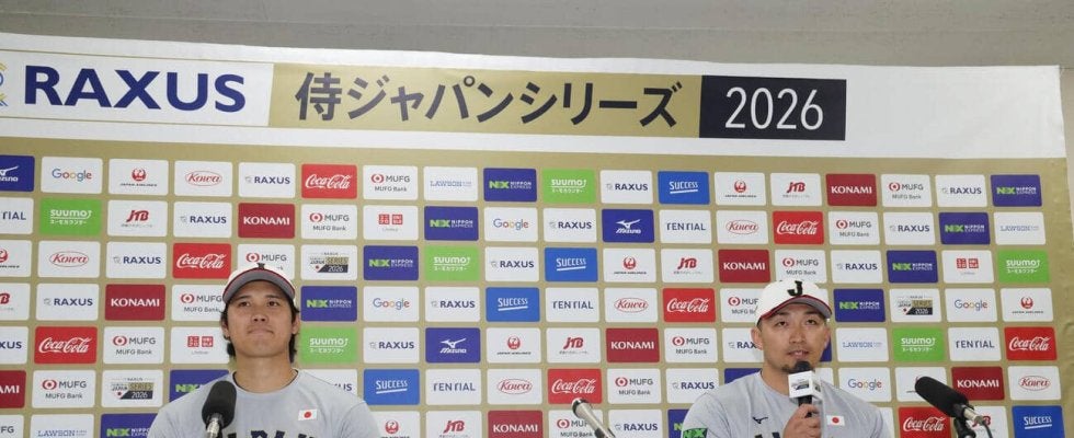 侍ジャパン大谷翔平投手(31)がついにチームに合流した。バンテリンドームでの全体練習日となった26日、昼過ぎに羽田空港から名古屋県営空港(小牧空港)に到着するとそのまま球場入り。井端弘和監督(50)らナインと交流し、グラウンドで汗を流した。前日25日にチームに合流していた鈴木誠也外野手(31)との合同会見にも出席。同学年で仲の良さをにじませる“爆笑会見”で報道陣を笑わせるとともに、世界一連覇への熱い覚悟も示した。会見の一問一答は以下の通り。