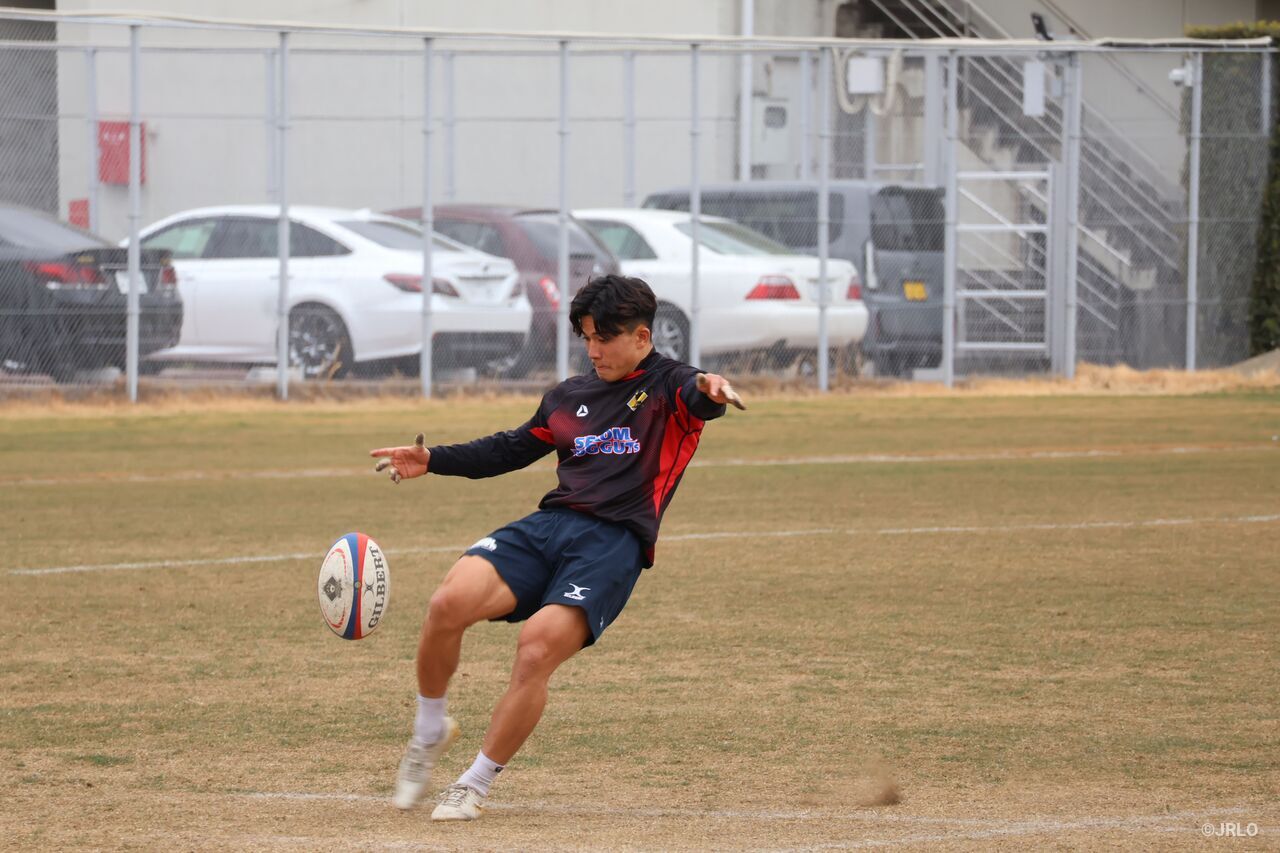 次のL戸田戦のリザーブには、2月にアーリーエントリーされた注目株も名を連ねた。今年の全国大学選手権でベスト4に進出した帝京大学で、スクラムハーフとして司令塔の役目を担った武智成翔だ。