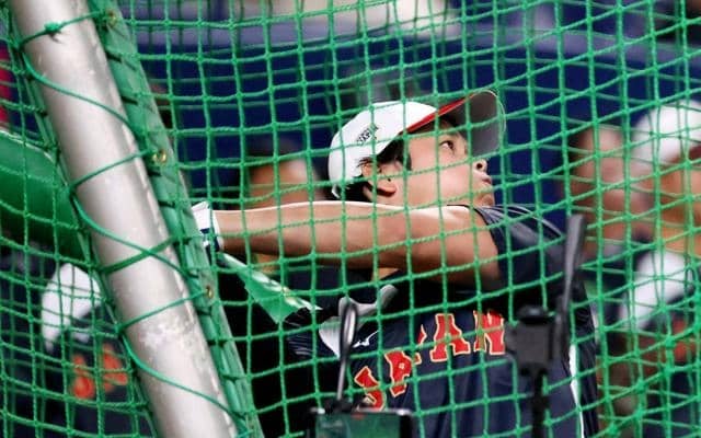 WBCへ大谷翔平が打撃練習、豪快なスタンドインに観客どよめき