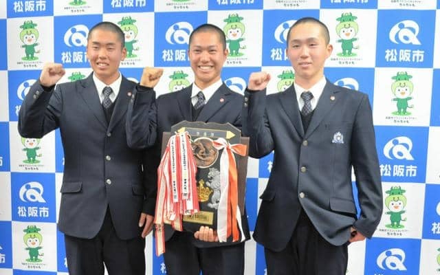 三重高校選手ら、「一戦必勝」 選抜前に地元の松阪市役所訪問 | 野球