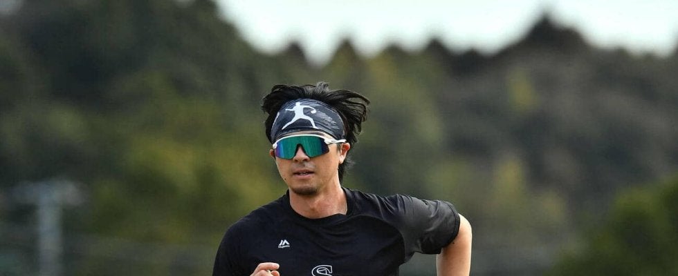 【写真】走り込みを行うソフトバンク上沢(撮影・岩下翔太)