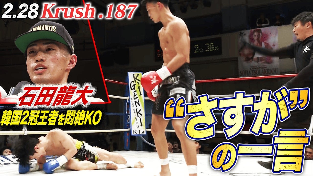 【Krush】フェザー級王者・石田龍大、韓国2冠王者を戦慄のボディ一撃でマットに沈める...