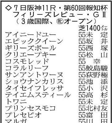 報知杯フィリーズレビューの主な登録馬。※騎手は想定