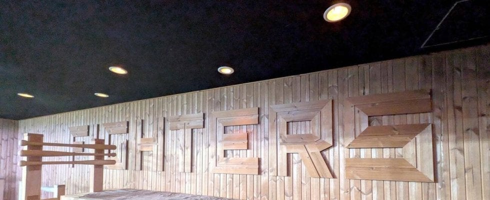 【写真】サウナ施設の壁面に「FIGHTERS」のロゴが設置された(撮影・黒川智章)