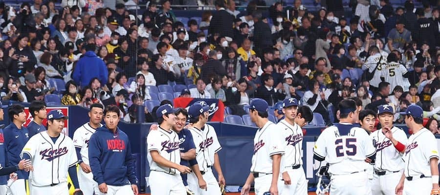 京セラドームで阪神と練習試合を行った韓国代表ナイン【写真:加治屋友輝】