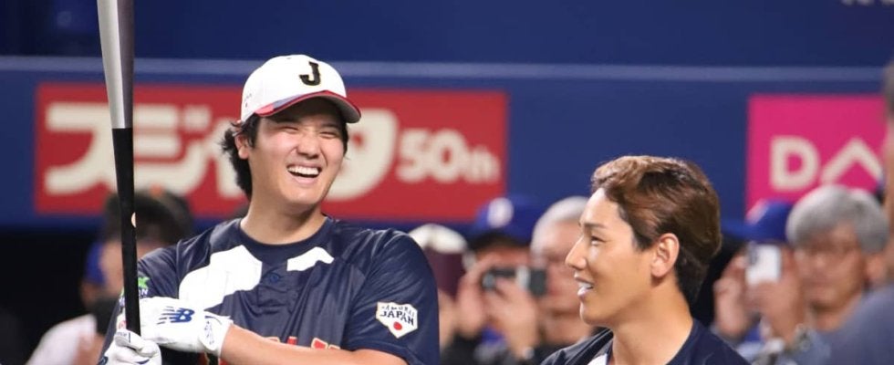 大谷翔平に困惑「デカすぎ」 侍移動中にファン発見…屈強な男たちよりも“際立つ体格”