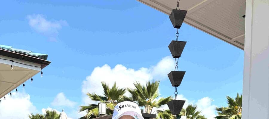 ハワイのゴルフ場で、練習の合間に浮輪に収まる小祝さくら(提供写真)