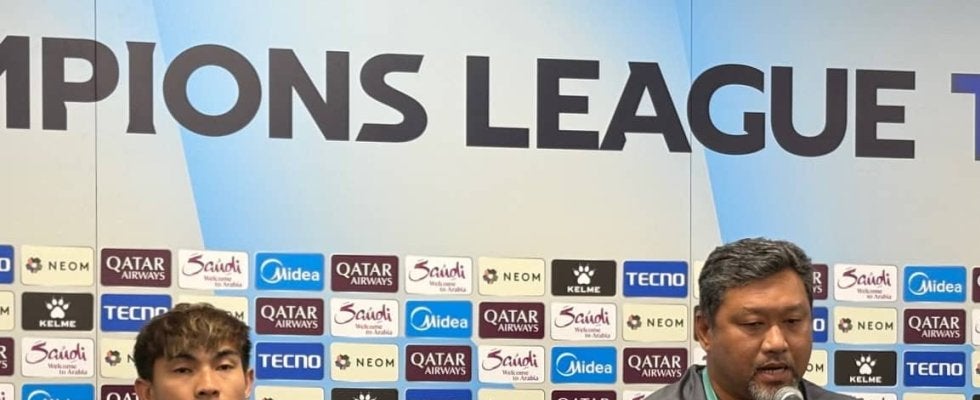 【写真】ACL2準々決勝第1戦の公式会見に出席したラチャブリMFウォンコーン(左)とスリマカ監督(撮影・永田淳)