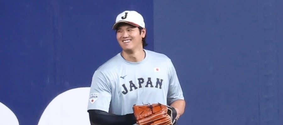 試合前に練習を行う侍ジャパン・大谷翔平【写真:加治屋友輝】