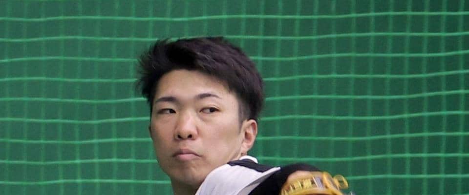 阪神・石井 座った状態でキャッチボール 固定器具装着した左脚の動きをチェック | 野球
