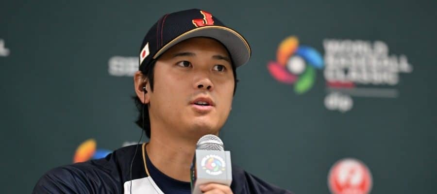 会見で質問に答える侍ジャパン・大谷翔平【写真:Getty Images】