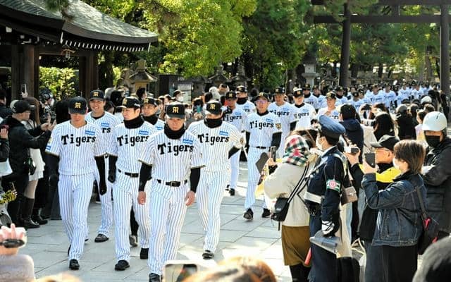 阪神タイガースが西宮神社で必勝祈願 村上頌樹投手は絵馬に「熱覇」 | 野球
