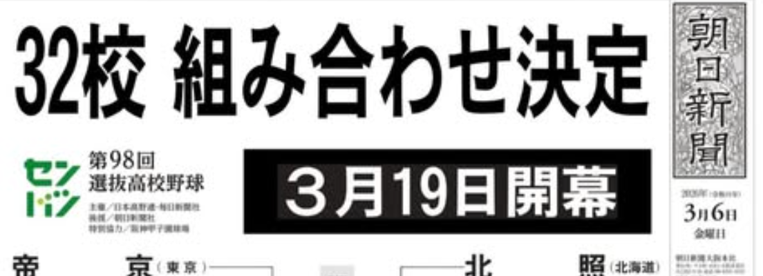 【画像】【センバツ2026】第98回組み合わせ決定 横浜は初戦で神村学園と激突 開幕は沖縄尚学vs.帝京