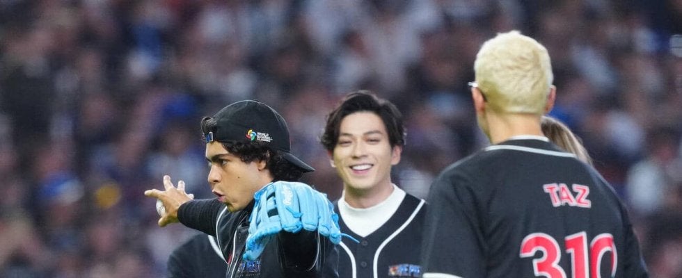 <WBC:台湾-日本>◇1次ラウンドC組◇6日◇東京ドーム始球式を実写版の「麦わらの一味」が務めた。プレーボール直前、グ…
