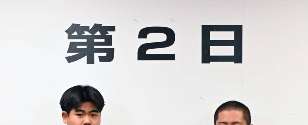 【写真】健闘を誓う花巻東の古城大翔主将(左)と智弁学園の角谷哲人主将(代表撮影)