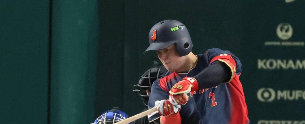【写真】台湾対日本 2回表日本無死一塁、牧は左前打を放つ(撮影・加藤哉)