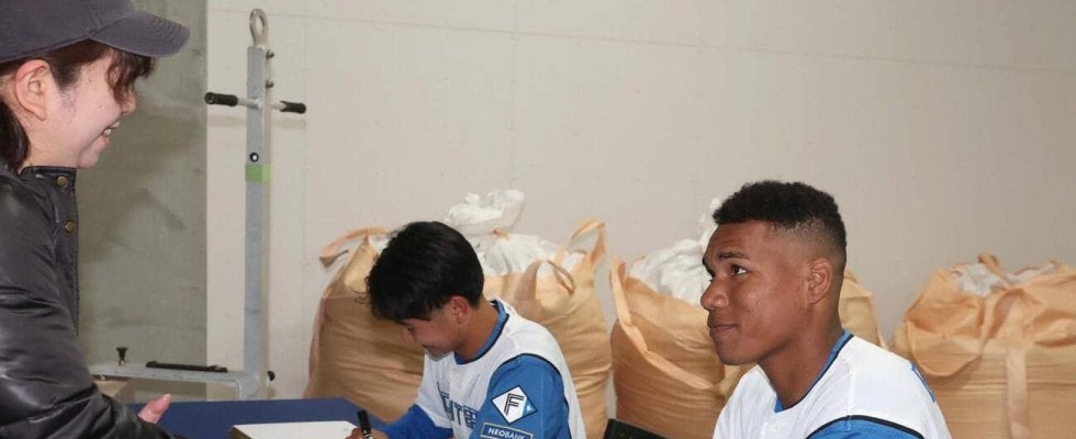 【写真】日本ハム対ロッテ ファンにサインするエドポロ(撮影・黒川智章)