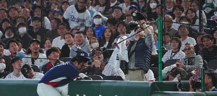 韓国代表にアクシデント 一塁手がフェンス激突…場内騒然、亀井コーチ駆け寄る