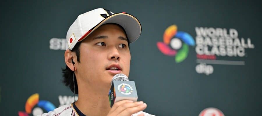 試合後、取材に応じる侍ジャパン・大谷翔平【写真:Getty Images】