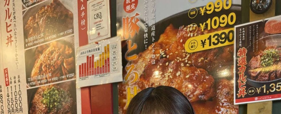 【写真】カルビ丼を紹介する工藤
