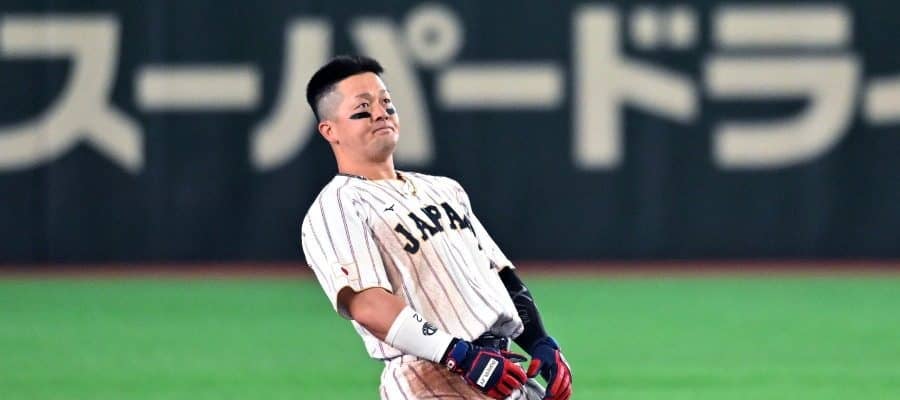 牽制タッチアウトとなった侍ジャパン・牧秀悟【写真:Getty Images】