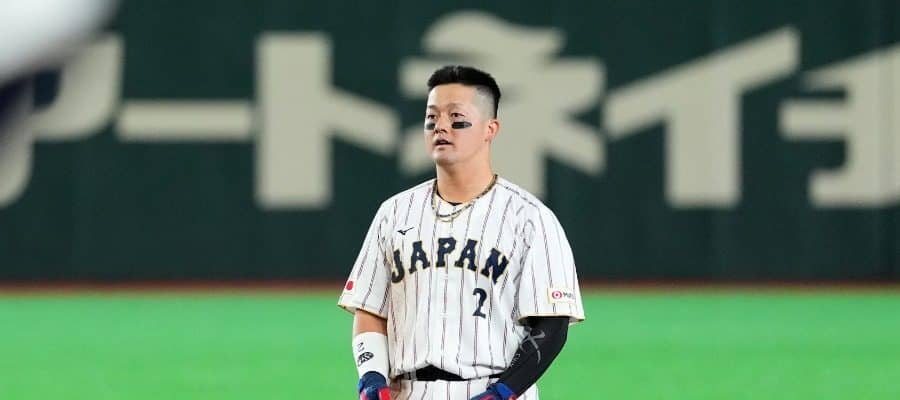 牽制タッチアウトとなった侍ジャパン・牧秀悟【写真:Getty Images】