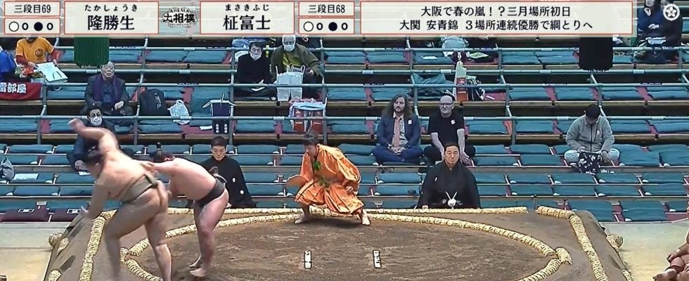 <大相撲三月場所>◇初日◇8日◇大阪・エディオンアリーナ【映像】カメラが捉えた升席に“鎮座”する著名人 大相撲三月場所の…