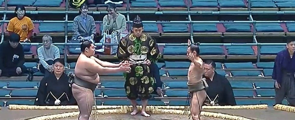 「変わった決まり手」「空気投げ」体重約2倍の225キロ巨漢を一瞬の妙技で撃破 2人同時にゴロンで館内「おぉ」どよめき
