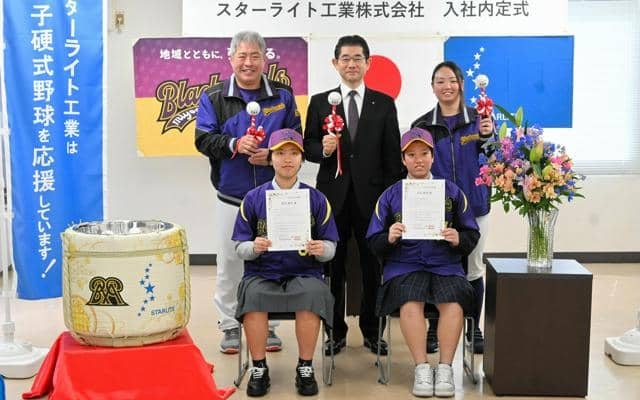 女子野球と仕事、両立を 広島の工場で「アスリート社員」の内定式