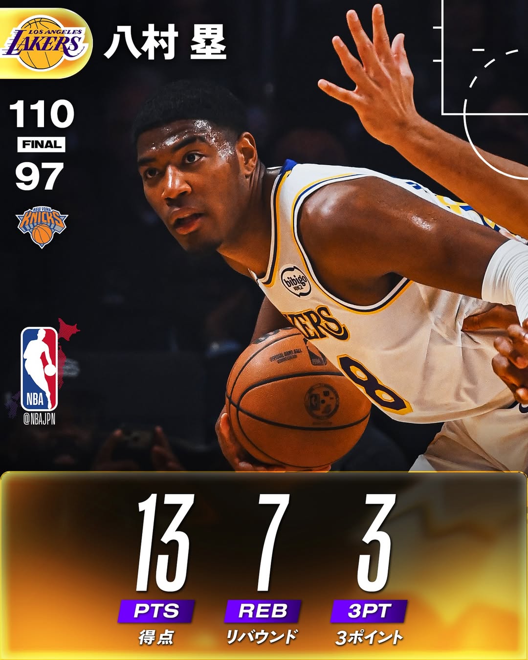 9日、NBA Japanが公式SNS(@nbajpn)を更新した。【画像】レイカーズ・八村塁、13得点7リバウンドで勝利…