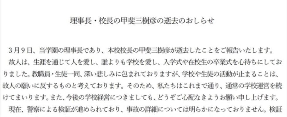 和歌山南陵の公式インスタグラムは10日、理事長兼校長の甲斐三樹彦氏が逝去したことを発表した。「理事長・校長の甲斐三樹彦の…