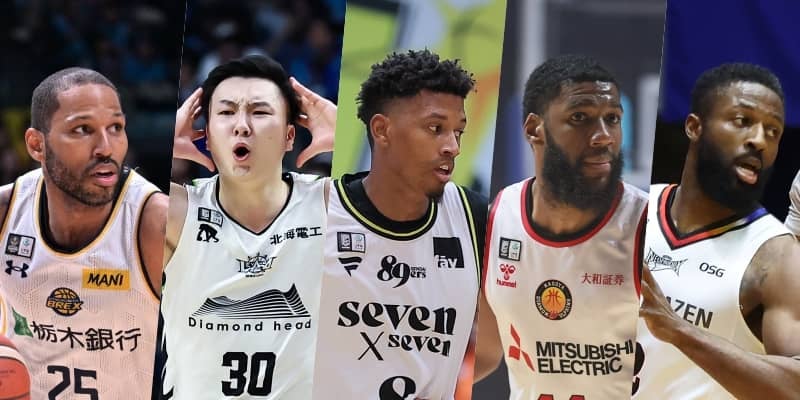 (左から)ニュービル、富永、カルバー、ヘンリー、ヌワバ[写真]=B.LEAGUE