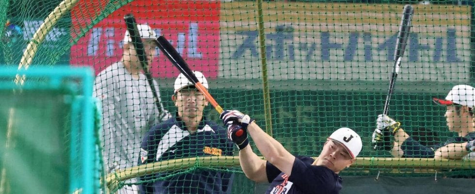 【写真】日本対チェコ 打撃練習する侍ジャパン佐藤(撮影・加藤哉)