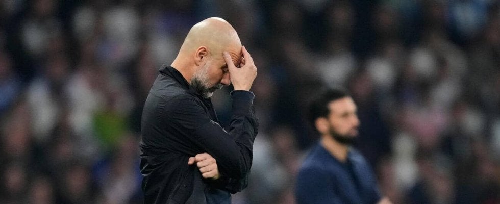 【写真】レアル・マドリードに敗れ、頭を抱えるマンチェスターCのグアルディオラ監督(AP)