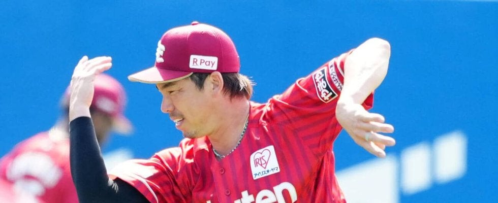 【写真】DeNA対楽天 試合前、マエケン体操する楽天先発の前田健(撮影・江口和貴)