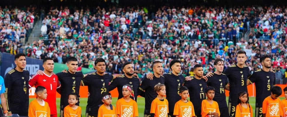 【写真】メキシコ代表 左からエドソン・アルバレス、GKルイス・マラゴン、ヨハン・バスケス、ヘスス・ガジャルド、アレクシス・ベガ、ロベルト・アルバラド、ホルヘ・サンチェス、オルベリン・ピネダ、マルセル・ルイス、セサル・モンテス、ラウル・ヒメネス(2025年9月撮影)