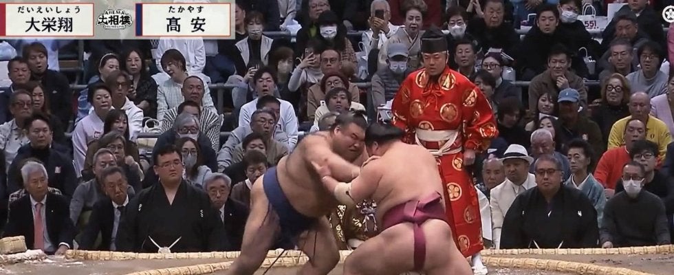 【画像】大栄翔に激突して吹っ飛んでいく行司