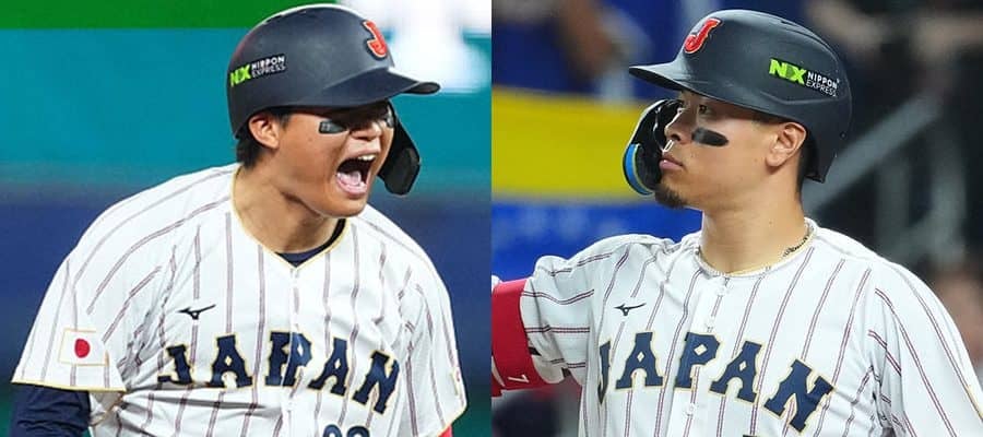 侍ジャパン・森下翔太(左)と佐藤輝明【写真:Getty Images】