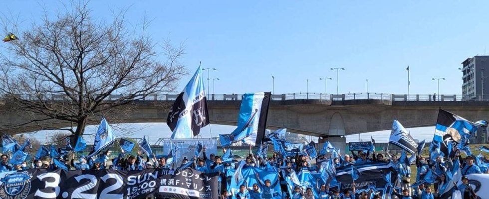 J1川崎 サポーター238人が22日横浜FM戦・国立開催をPR…多摩川河川敷から乗客にフラッグで告知のユニークイベント | サッカー